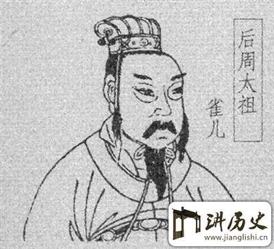 郭威,小名“郭雀儿”,五代后周王朝的建立者,后周太祖。曾为后汉的螂都留守,后汉隐帝嫌“厌为大臣所制”,派人前往邺都去谋杀郭威,以激起了郭威叛变。950年冬郭威发兵南向,攻入开封,推翻了后汉王朝,951年2月13日,即位建元,国号周,史称后周。